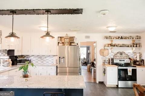 This newly updated solid brick home in Shannon Subdivision is on a 0.48 acre lot and includes another 0.8 acre in back of the house that fronts Highway 441. Large trees shade the fenced back yard and the 8x15 wired workshop with a concrete floor. Inside the house, you will enjoy the huge kitchen/breakfast area that's perfect for entertaining and those family gatherings. There are two large extra rooms that could be an office, a playroom, or a fifth bedroom. The garden lot at the back of the house has pecan trees and two long rows of grapevines. There is also a fig tree and numerous pollinator herbs and flowers. With 8/10 of an acre, you could raise chickens and have the biggest garden in town! Good neighbors! Come and see for yourself!
